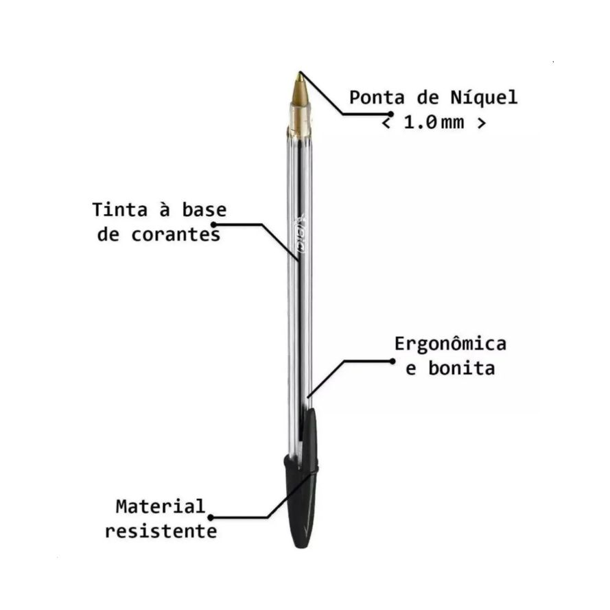 A Caneta Esferográfica BIC Cristal Preta é sinônimo de confiabilidade e desempenho. Seu corpo hexagonal transparente facilita o controle do nível de tinta, enquanto a tampa ventilada oferece segurança. Com ponta média de 1,0 mm, proporciona traços firmes, regulares e confortáveis para longas sessões de escrita. Ideal para escolas, escritórios e uso pessoal, é o produto clássico que une qualidade e economia em uma só escolha.