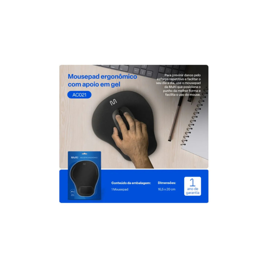 O Mouse Pad Ergonômico com Apoio em Gel Pequeno (AC021) Preto proporciona conforto e suporte durante o uso contínuo do mouse. O apoio em gel anatômico ajuda a manter o pulso em posição natural, prevenindo desconfortos e tensões musculares. A superfície lisa garante excelente deslizamento e precisão do cursor, enquanto a base antiderrapante mantém o mouse pad firme sobre a mesa. Compacto e durável, é ideal para escritórios, home offices e uso profissional.