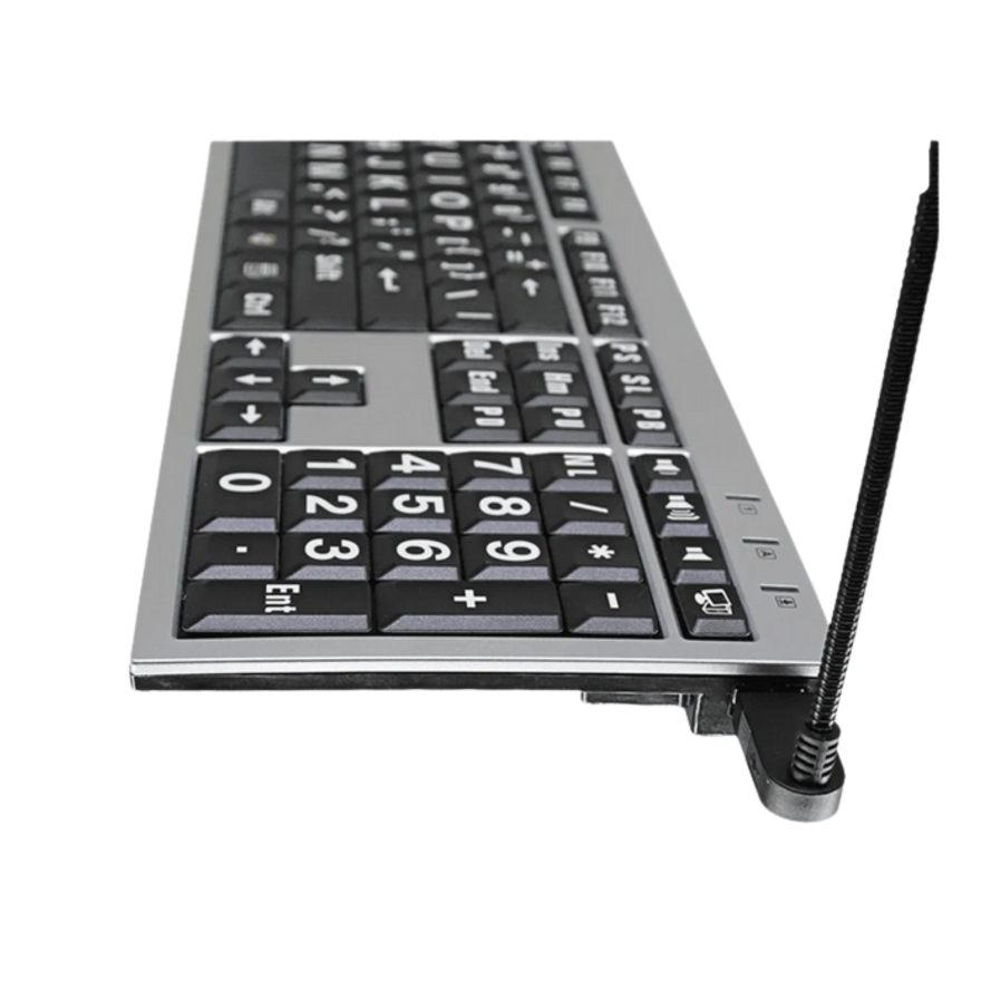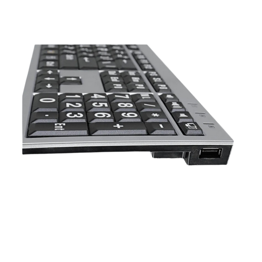 O Teclado para Baixa Visão Slim REF I002985 foi projetado para oferecer maior legibilidade e conforto visual no uso diário. Possui teclas pretas com caracteres em branco de alto contraste, favorecendo pessoas com visão reduzida que necessitam de identificação clara das teclas.