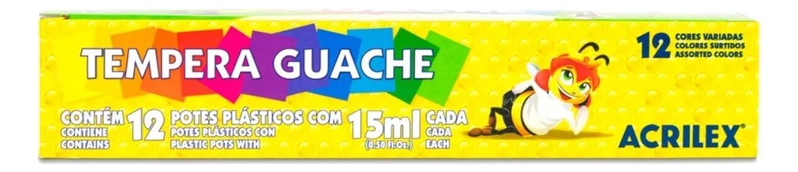 Tinta Guache Acrilex 15 ml 12 Cores – Caixa com 12 unidades Ref: 020120000