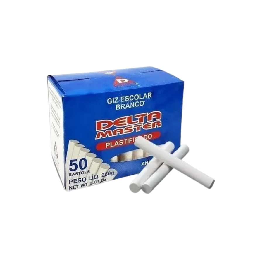 O Giz branco plastificado Delta em caixa com 50 unidades é especialmente desenvolvido para oferecer maior praticidade e higiene no uso em quadros-negros. A película plástica evita que o giz suje as mãos e reduz a quantidade de pó durante o uso. É antialérgico e não tóxico, ideal para escolas, salas de aula e ambientes corporativos. Cada bastão é resistente e proporciona escrita uniforme com baixo desgaste.