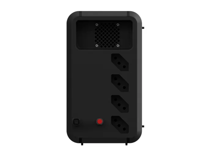 Possui tecnologia line-interactive com AVR, que estabiliza automaticamente a tensão, e oferece até 20 minutos de autonomia conforme a carga conectada.
