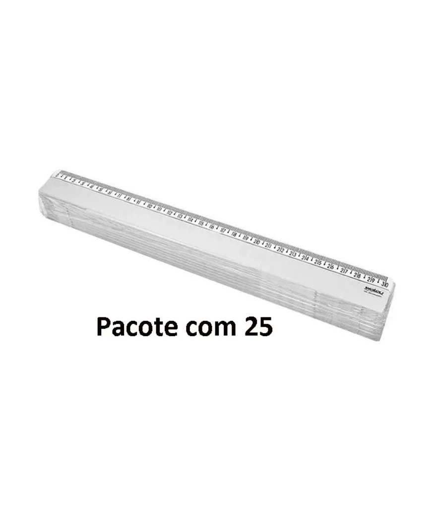 Pacote com 25 réguas cristal de 30 cm duráveis e resistentes, com graduação dupla em cm e mm.
